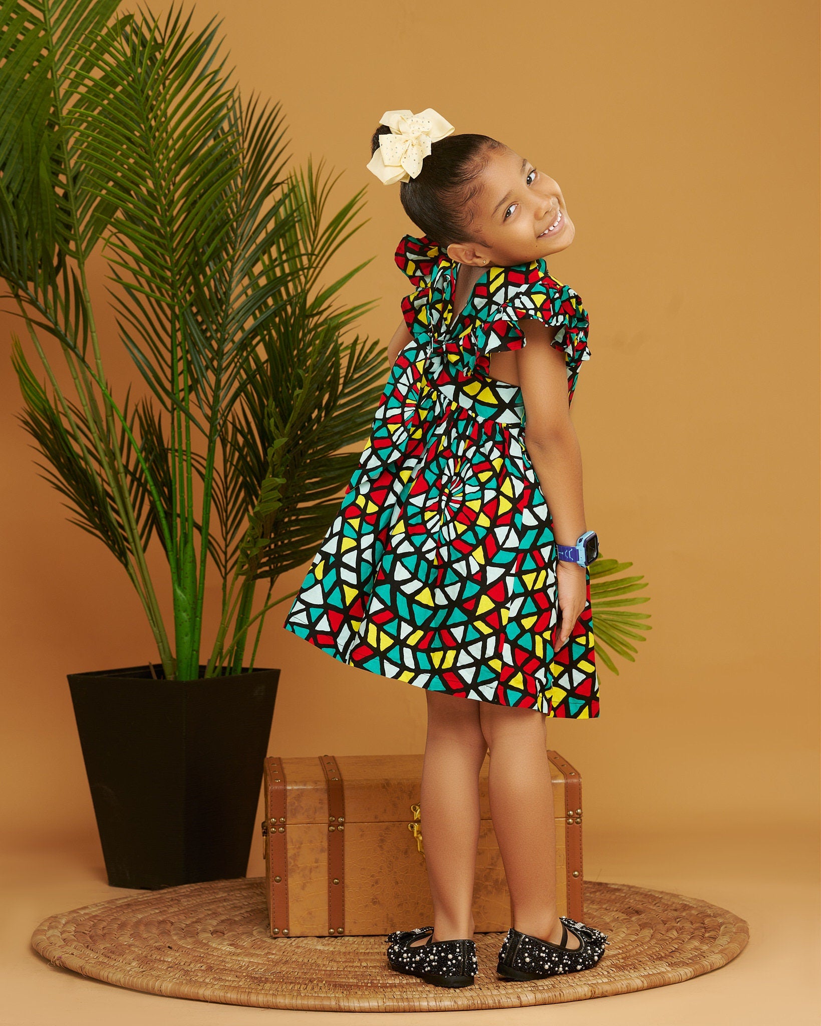 African Print Little Girl Multicoloured Dress for Birthday and special Occasions