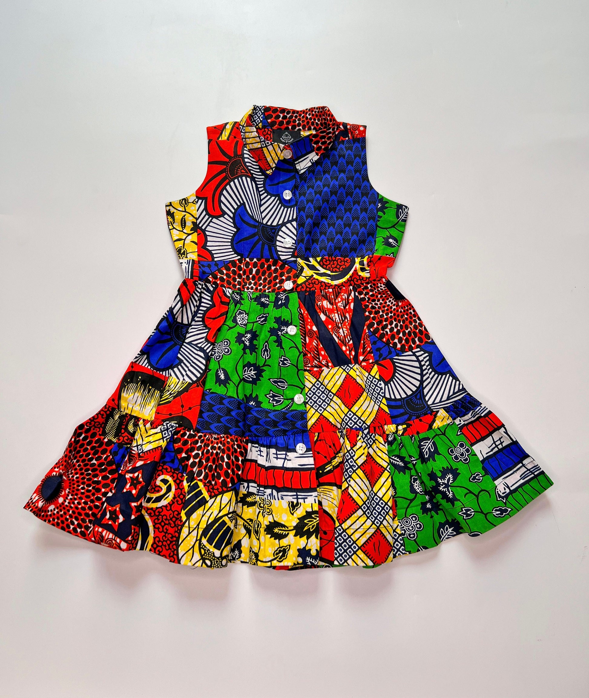 Beautiful Ankara wax Cotton shirt dress, with Button down details and a layered Aline cut.